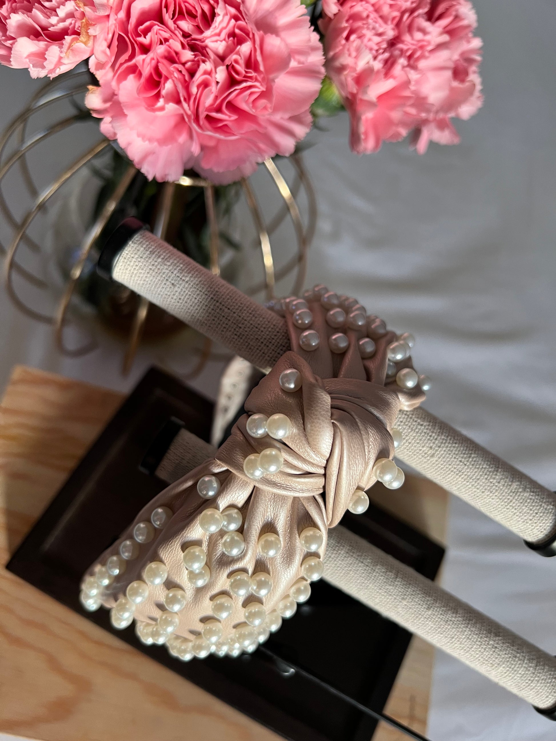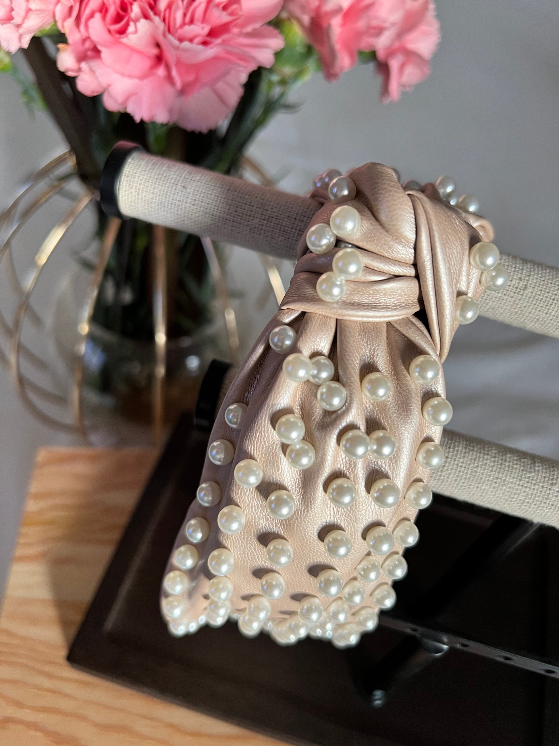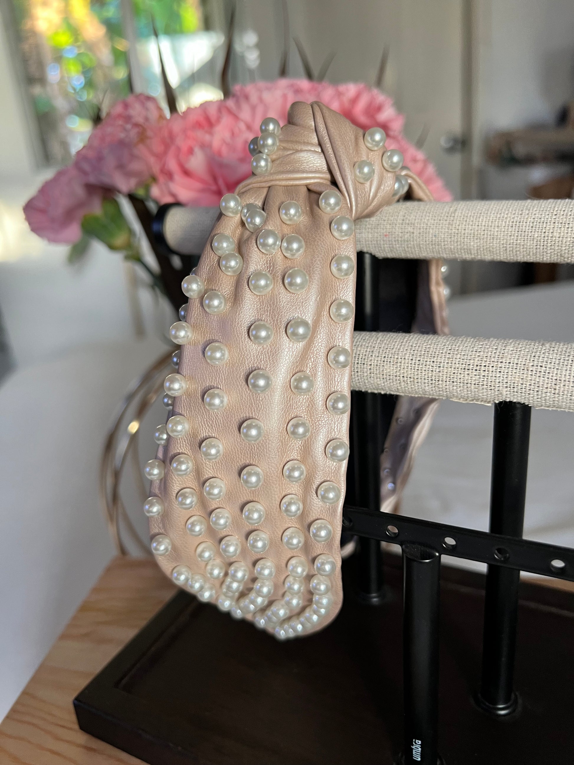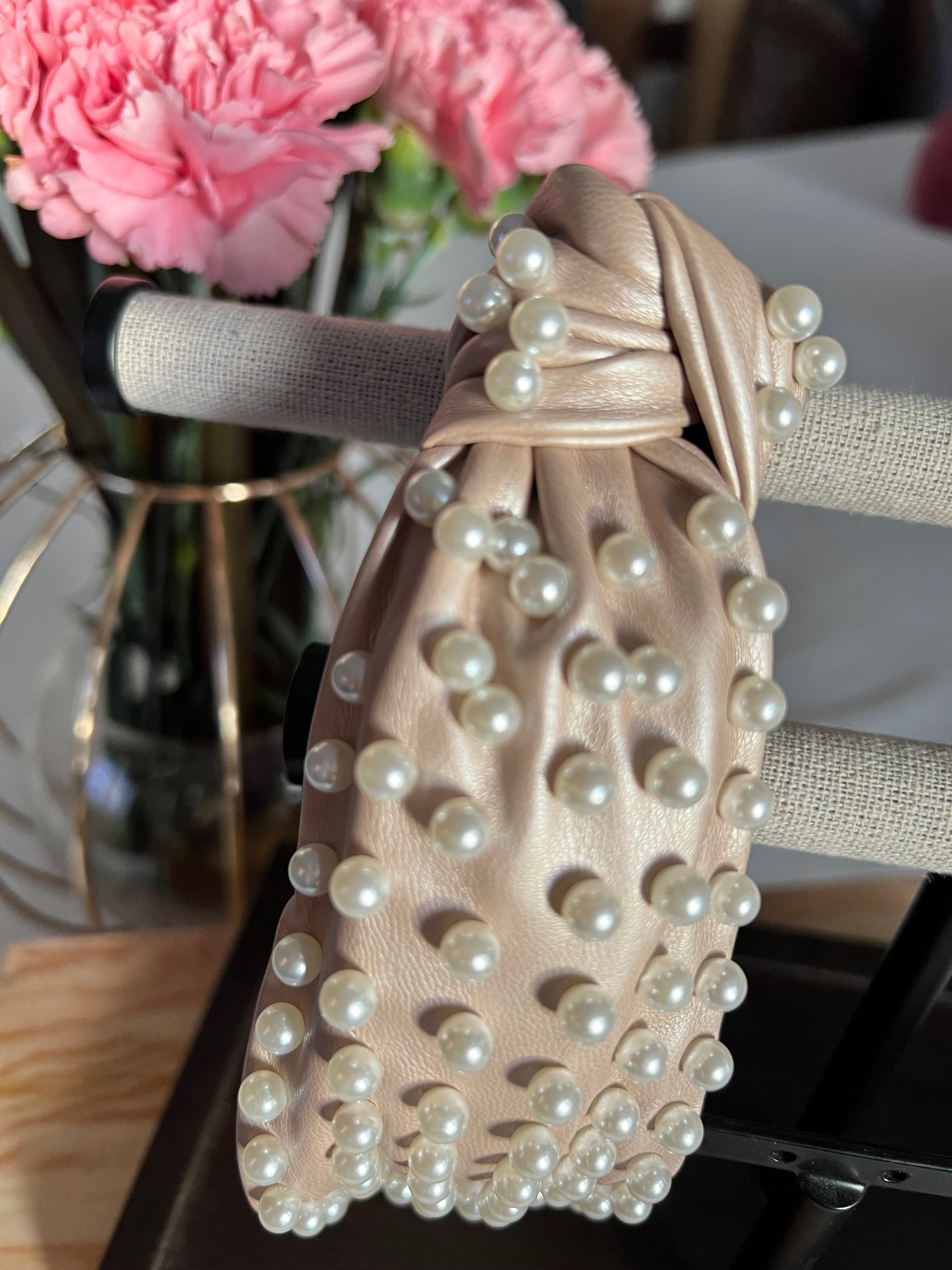 Diadema con perla artificial & con diseño de nudo Color beige perlado