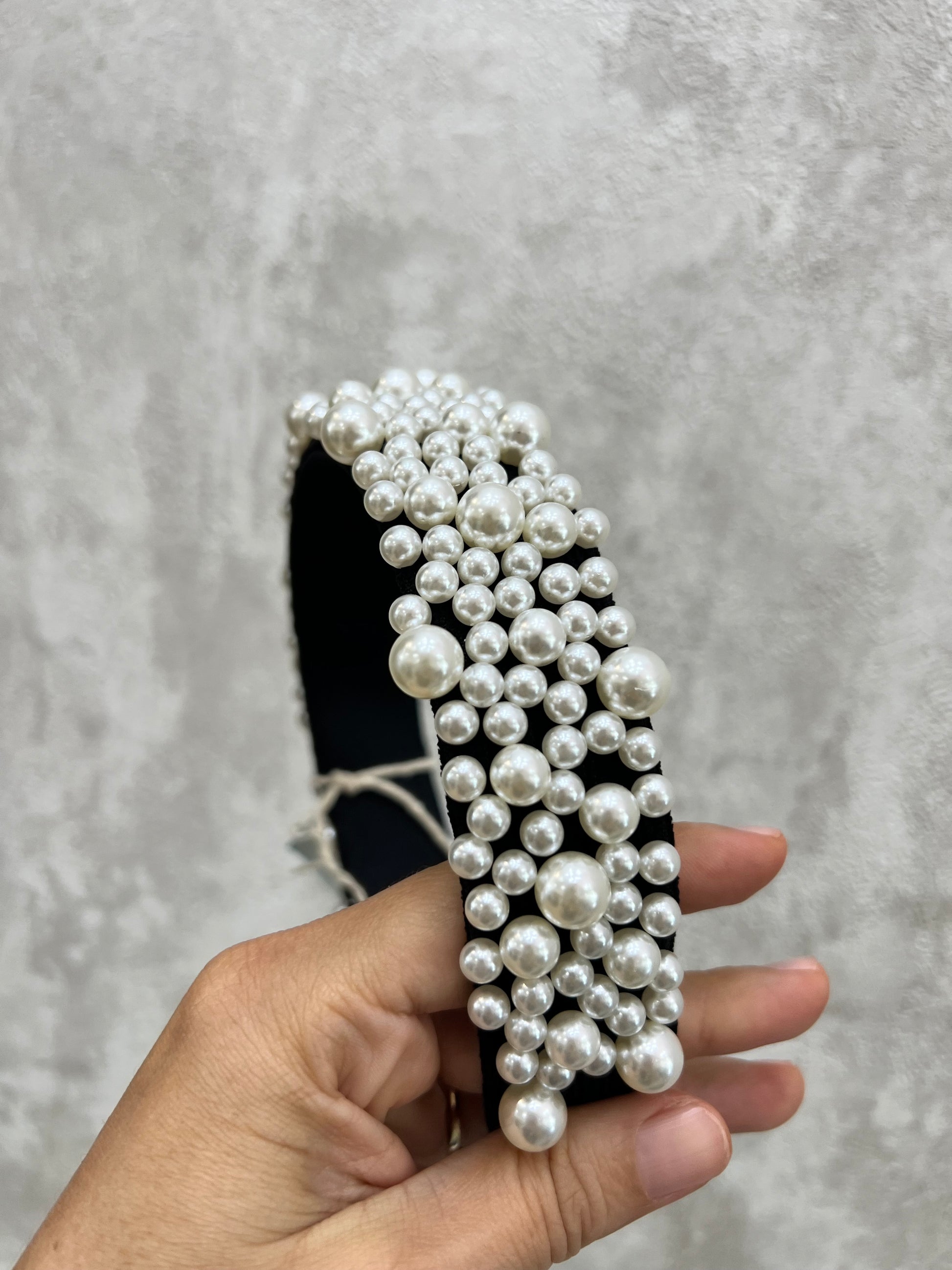 Diadema perlada con fondo negro 02718
