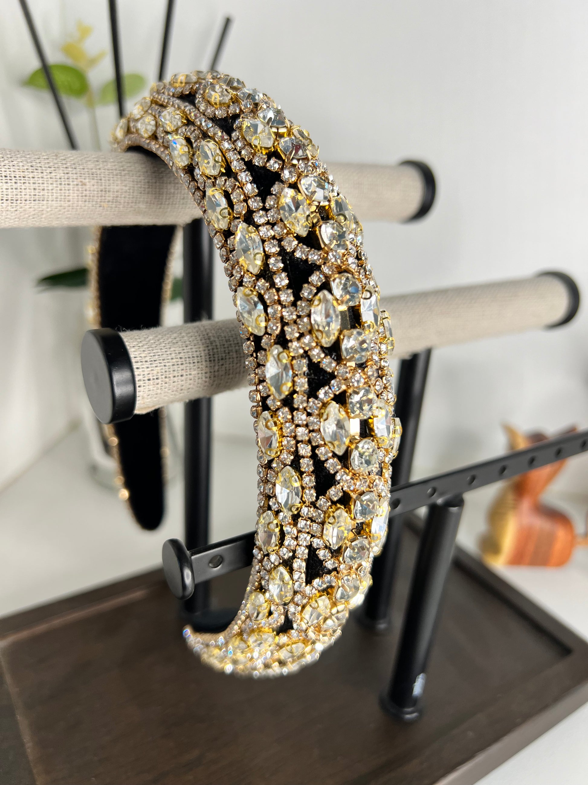 Diadema Vintage con gemas brillantes Dorada y plateda