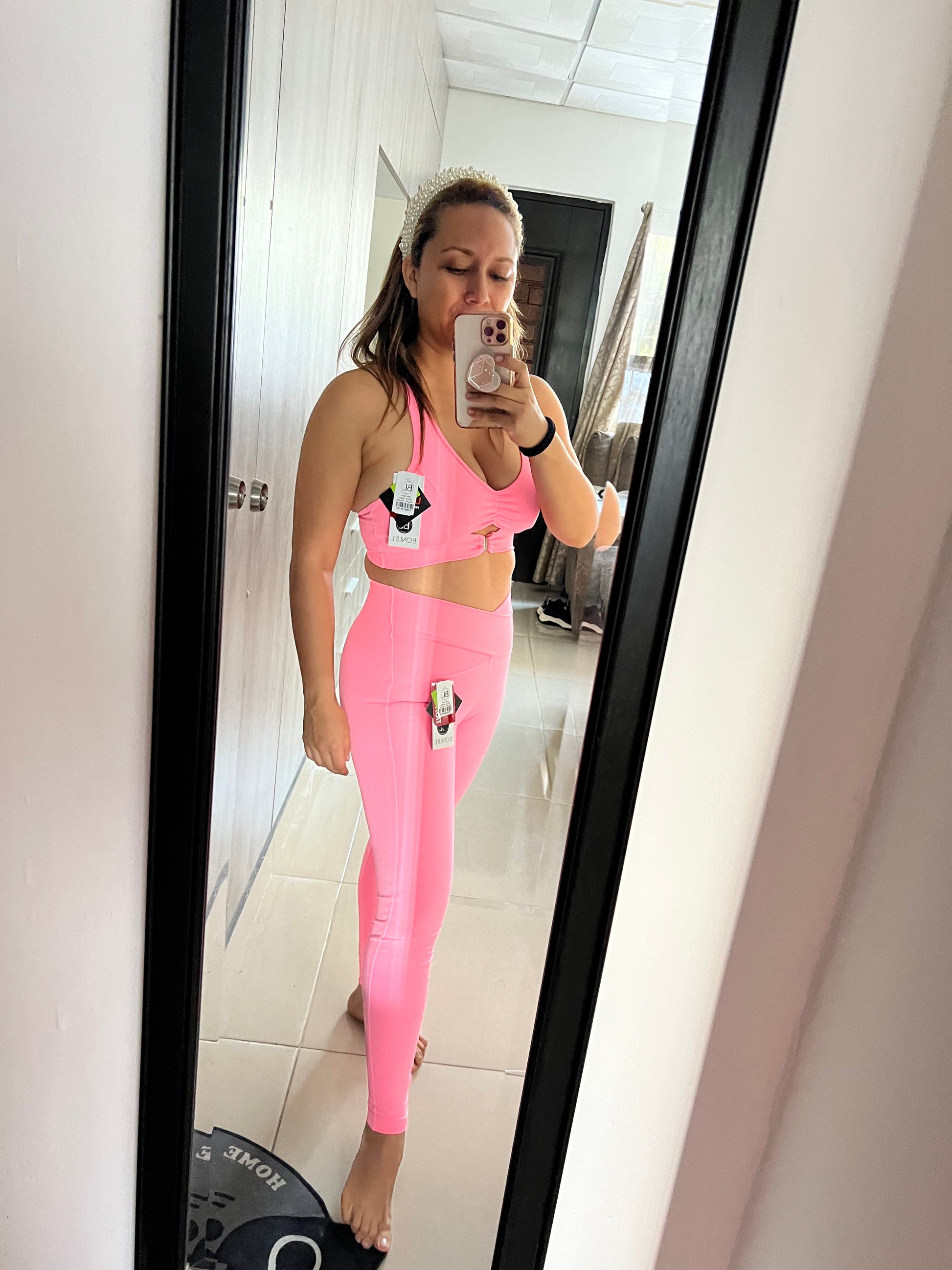 Conjunto deportivo con diseño moderno y sexy de top y leggings. Talla única, Marca colombiana