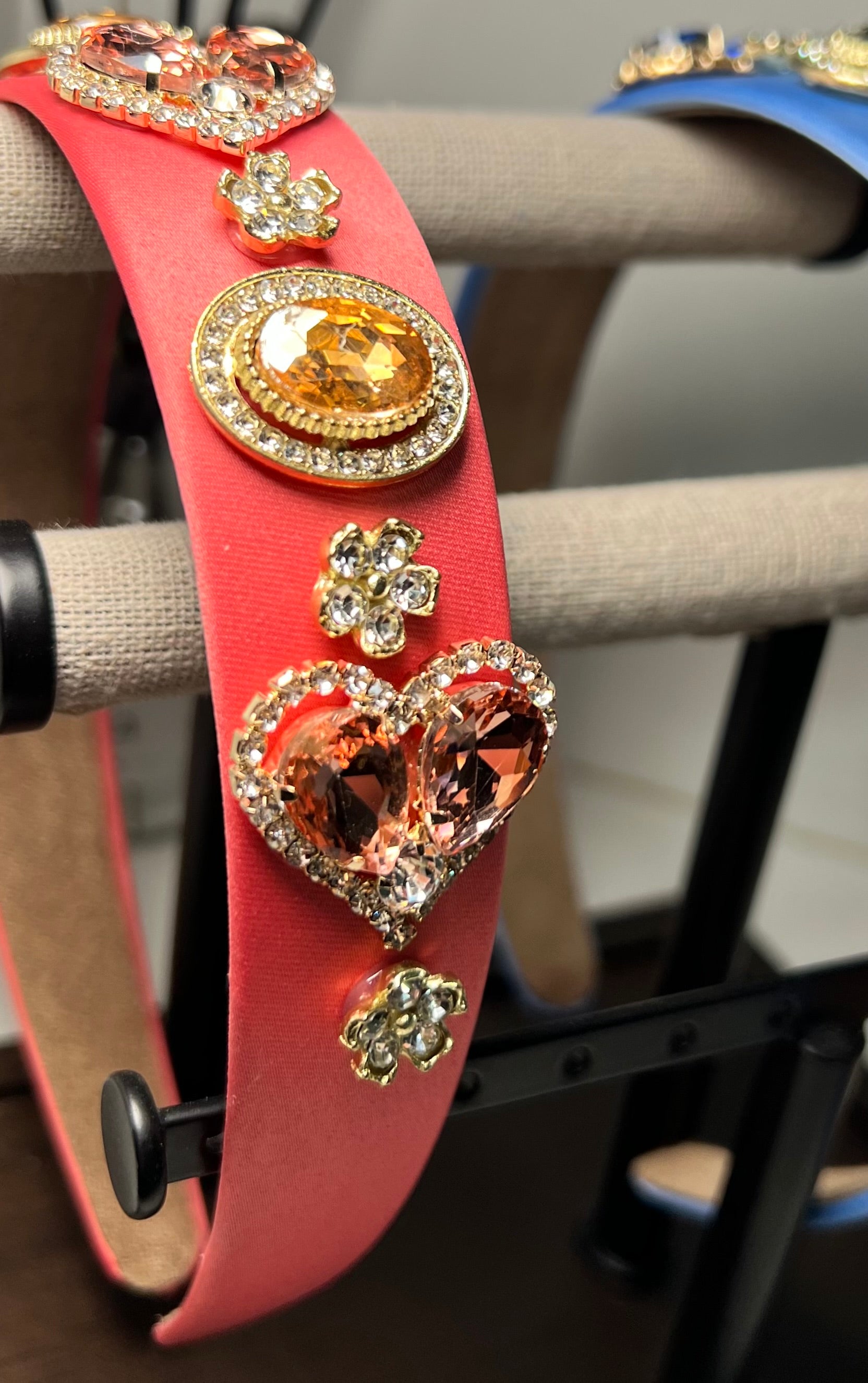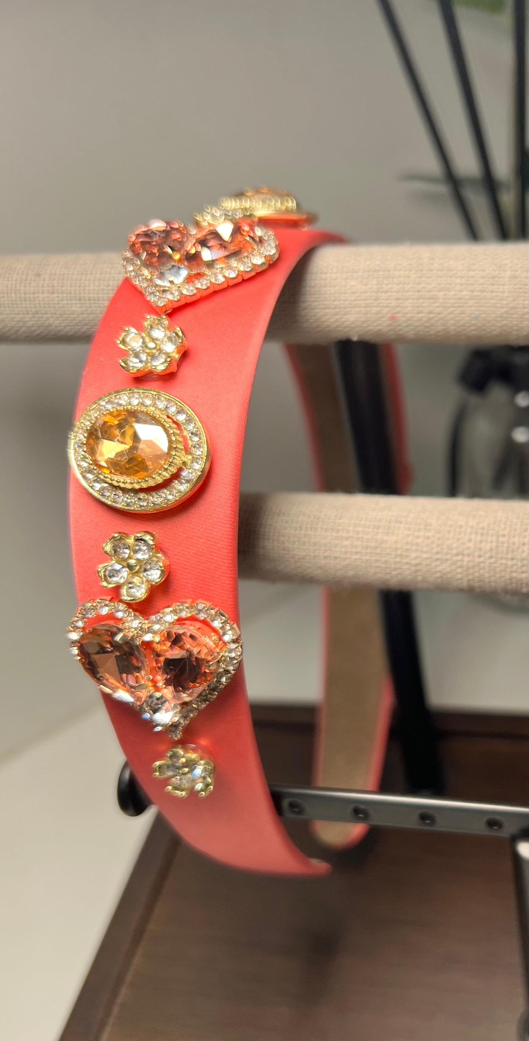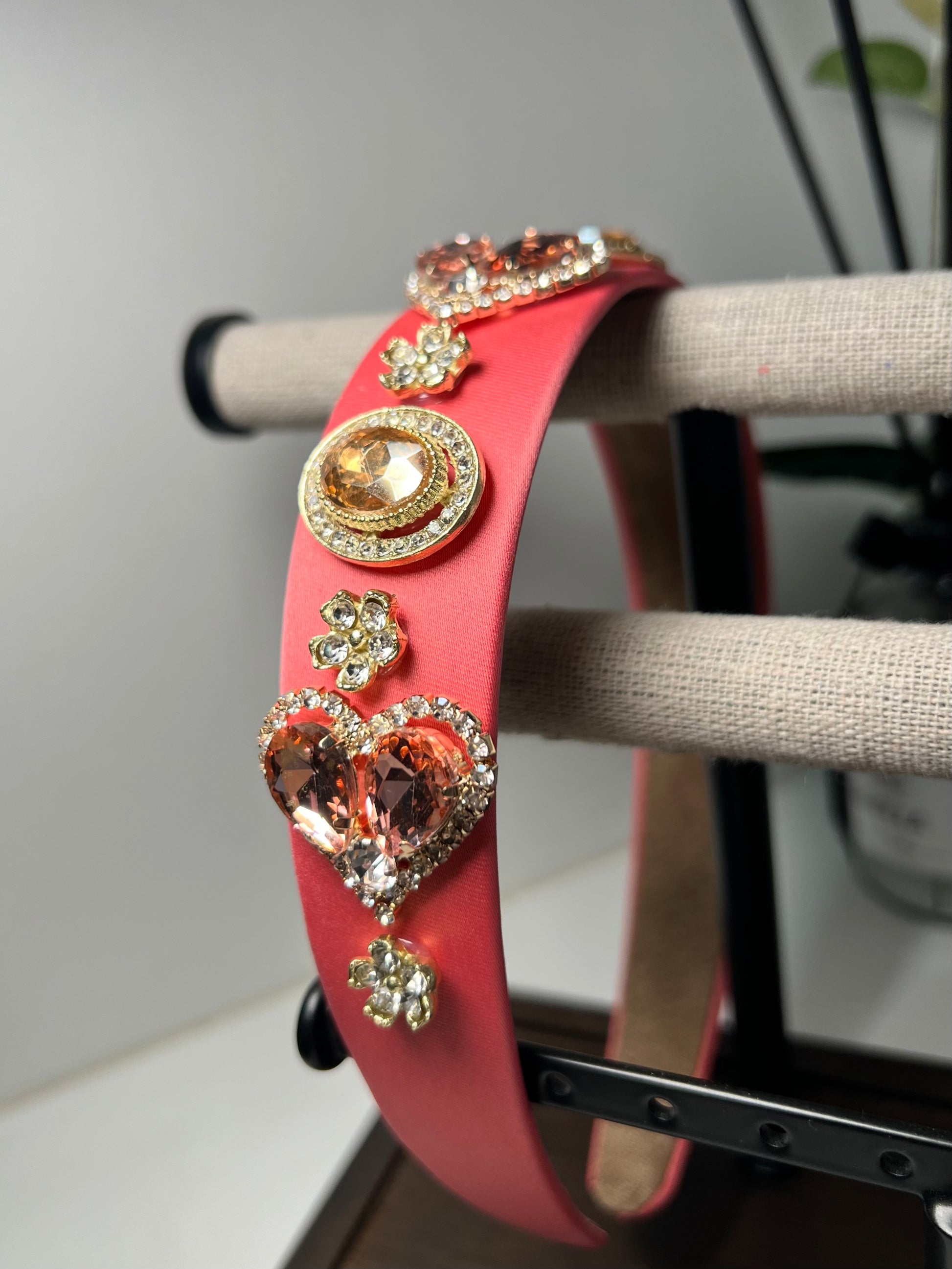 Diadema Decorada Con Pedrería En Forma De Corazón color salmón