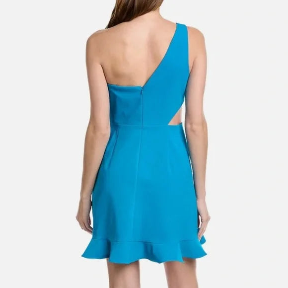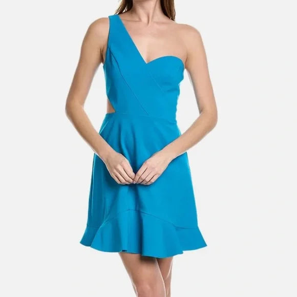 Este vestido corto turquesa de Aidan Mattox combina elegancia y sensualidad con un vibrante tono que resalta en cualquier ocasión. Su diseño sofisticado realza la figura, perfecto para destacar con estilo y confianza en eventos especiales.