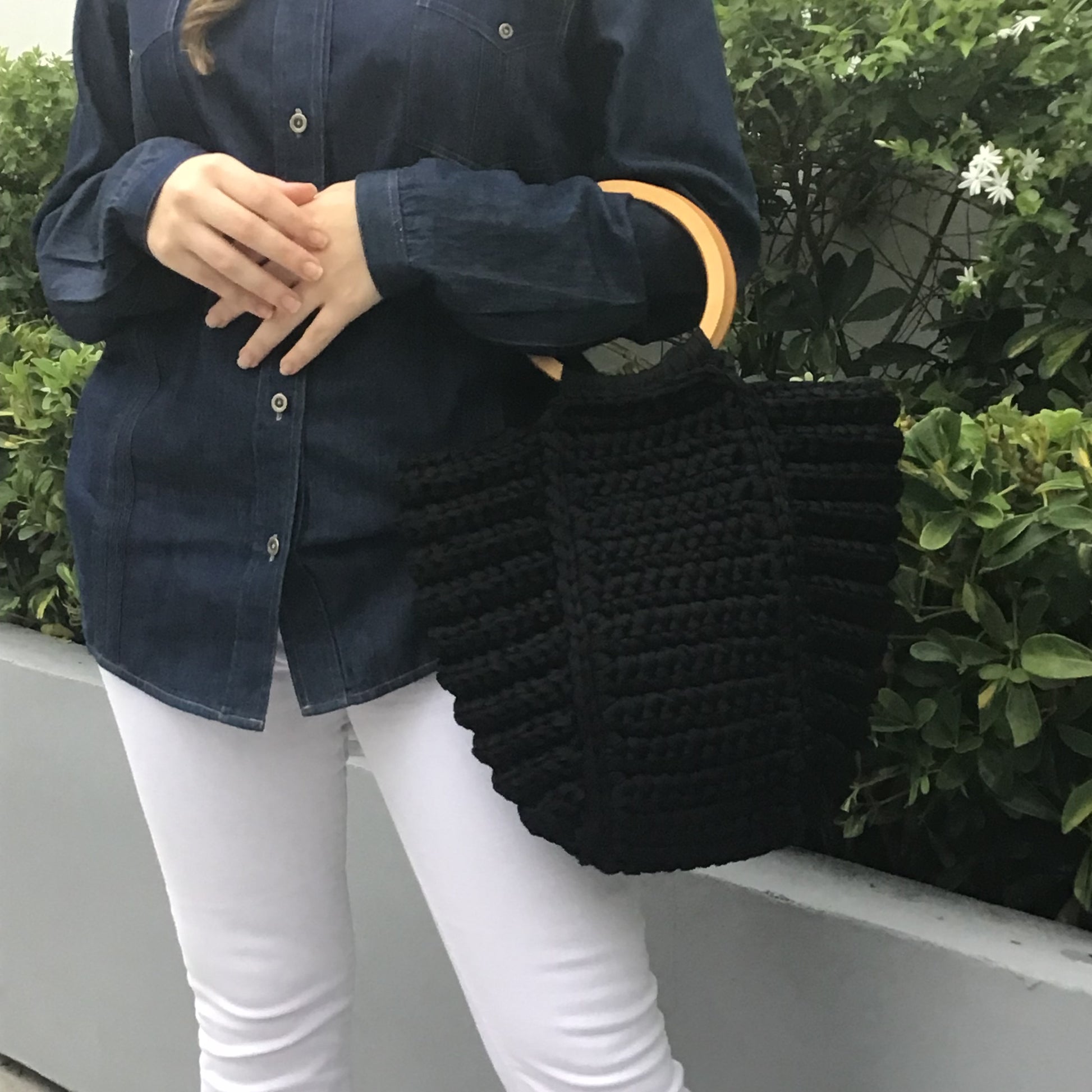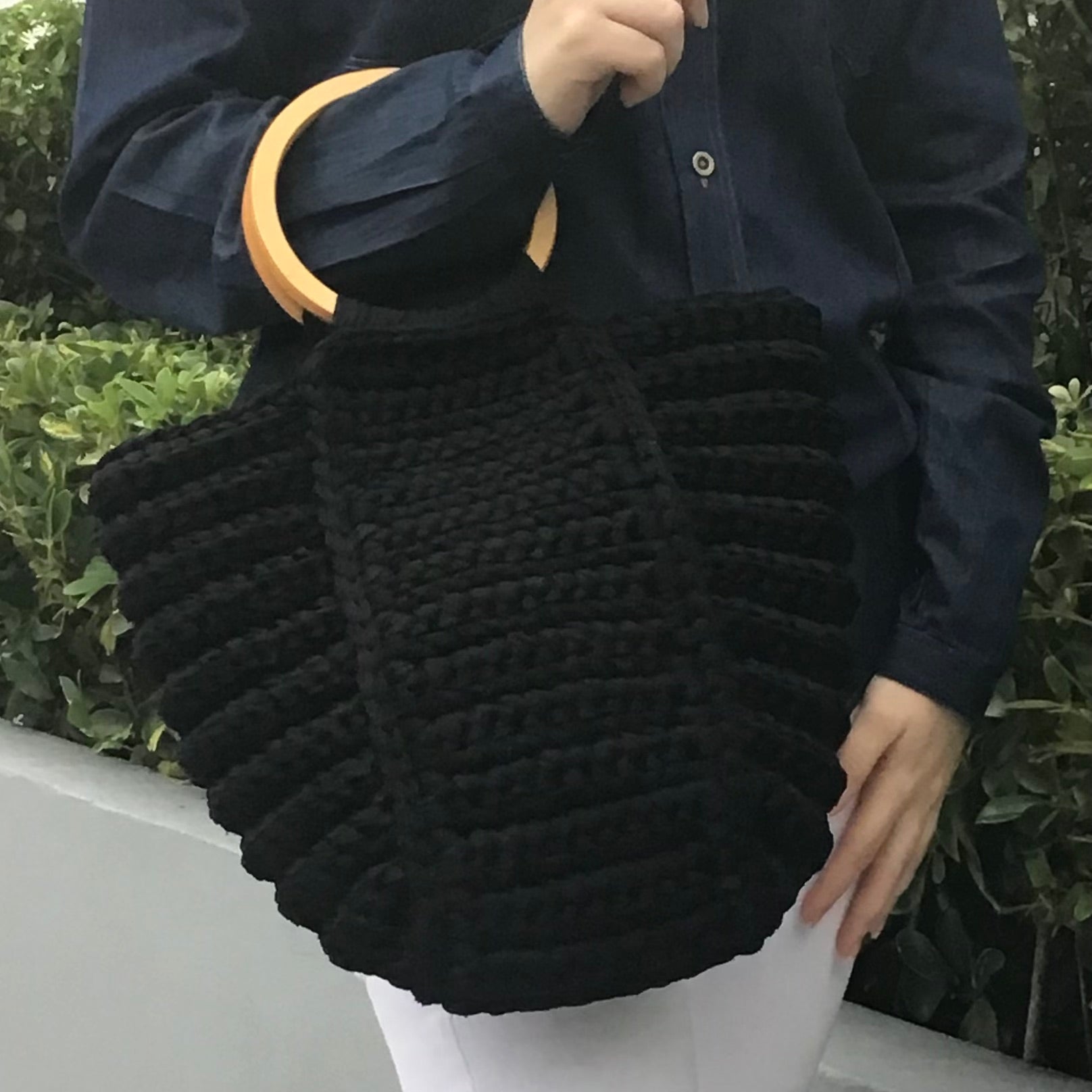 Precioso bolso Lovit NEGRO con asas claras - Hecho a mano con fettucia o cinta mágica