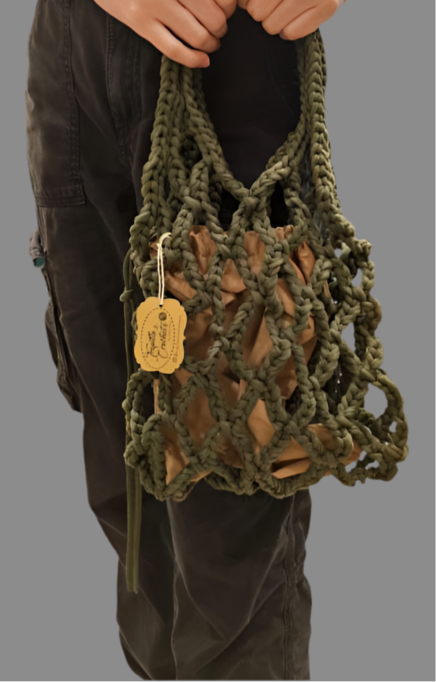 Summer like bolso de MALLA (RED) color VERDE OLIVO con baguie - hecho a mano con TRAPILLO