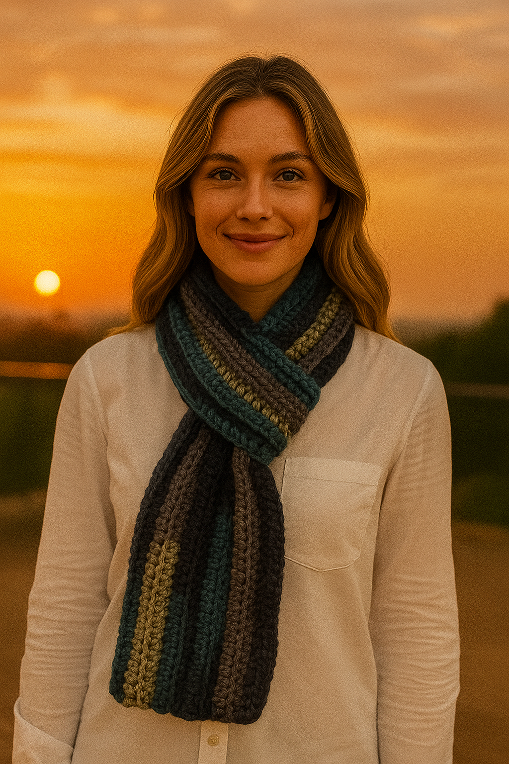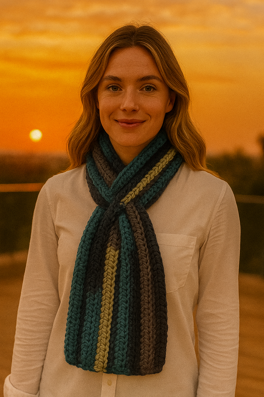 Bella bufanda estilo KEY HOLE, con colores preciosos, tejida a mano con la técnica de crochet