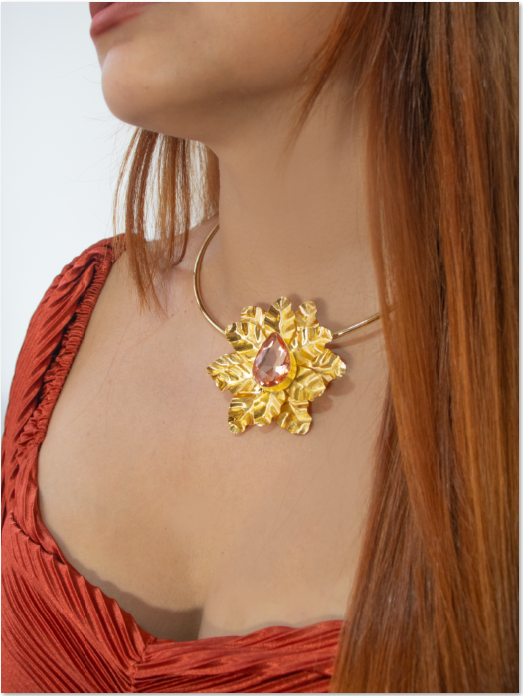Chocker en bronce con cristal y baño de 24k.