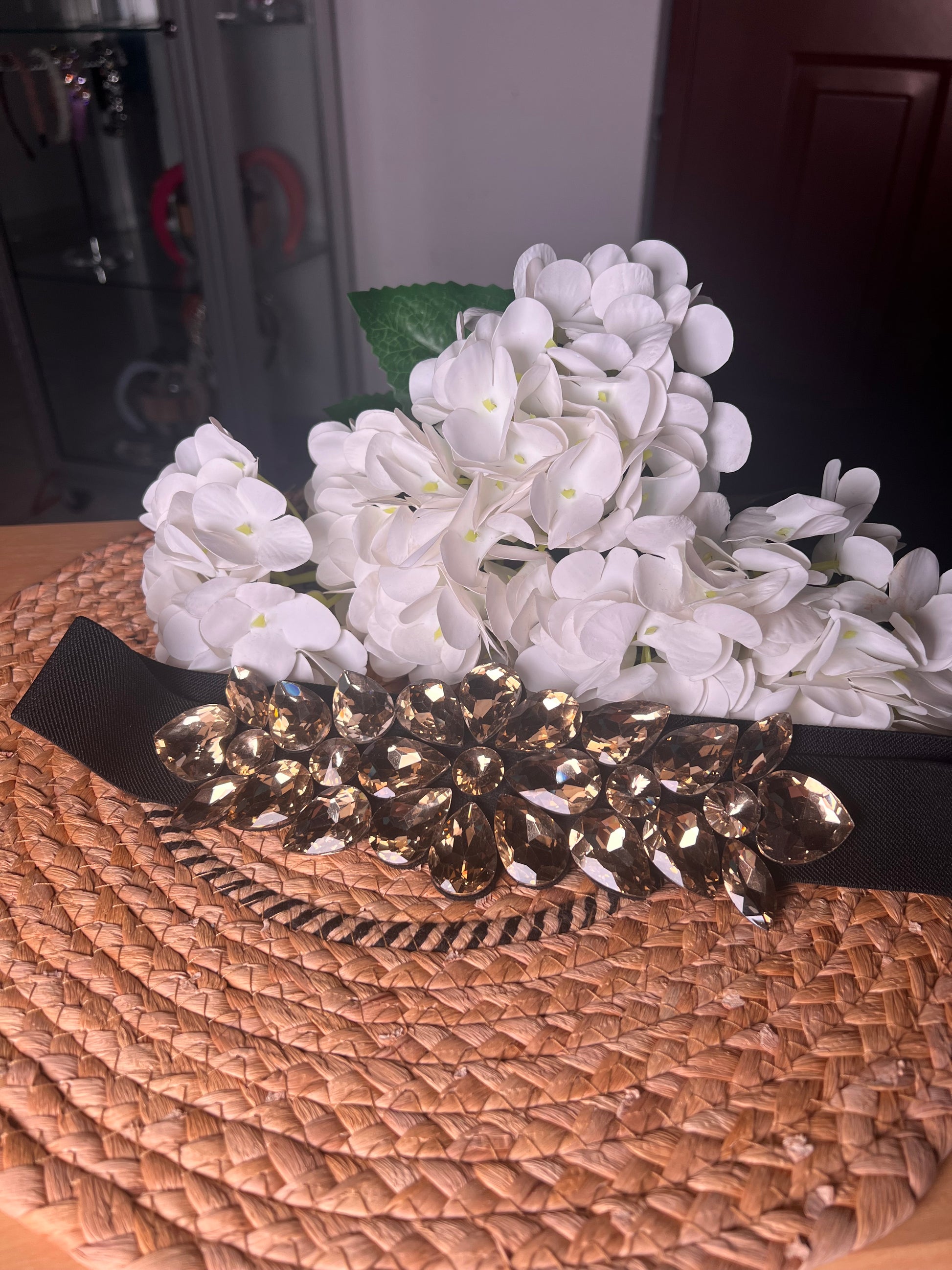 Cinturón elástico con diseño de flor bronce uní talla