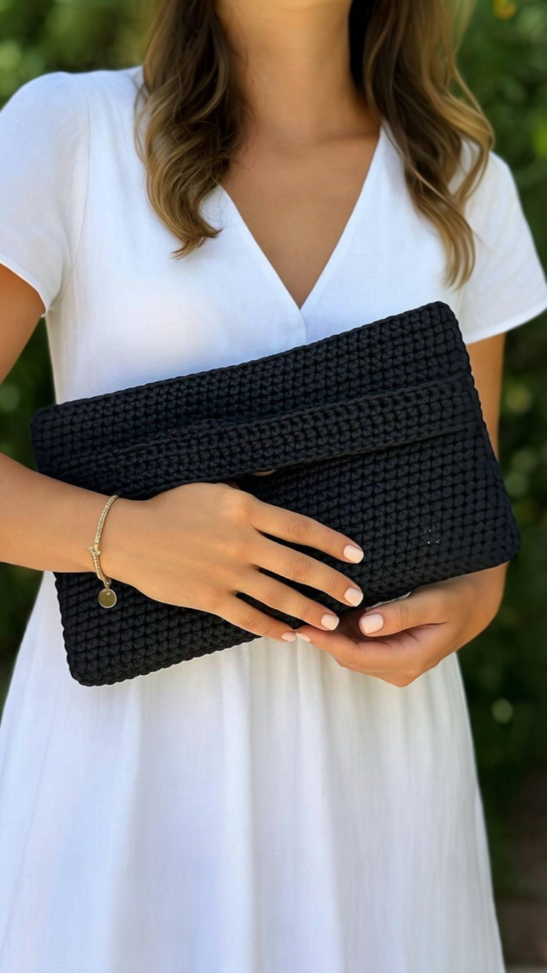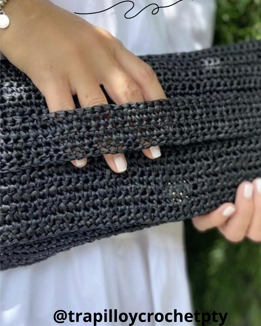 Espectacular bolso NEGROtipo CLUTCH confeccionado A MANO en RAFFIA suave