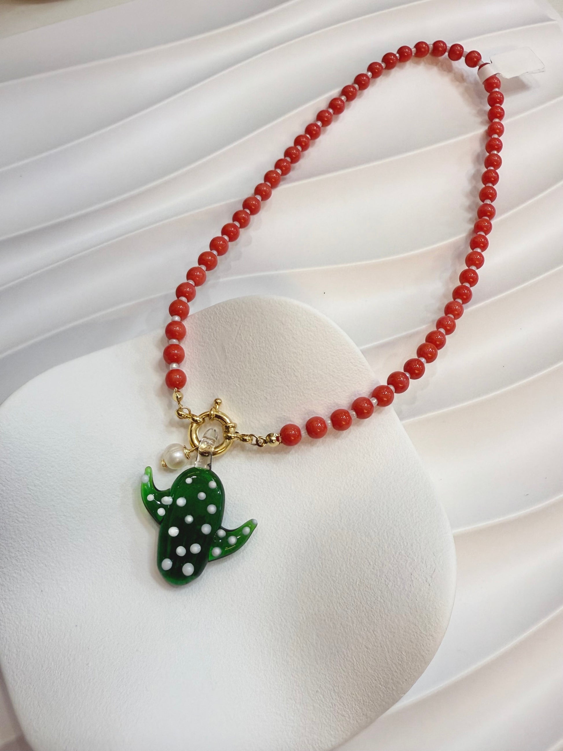 Descubre la alegría en cada detalle con este collar artesanal, cuidadosamente hecho a mano para añadir un toque divertido a tu estilo. Sus dijes bañados en oro 24k y las coloridas cuentas acrílicas y de piedras semipreciosas crean un accesorio único y vibrante, ideal para expresar tu personalidad con arte en cualquier ocasión.