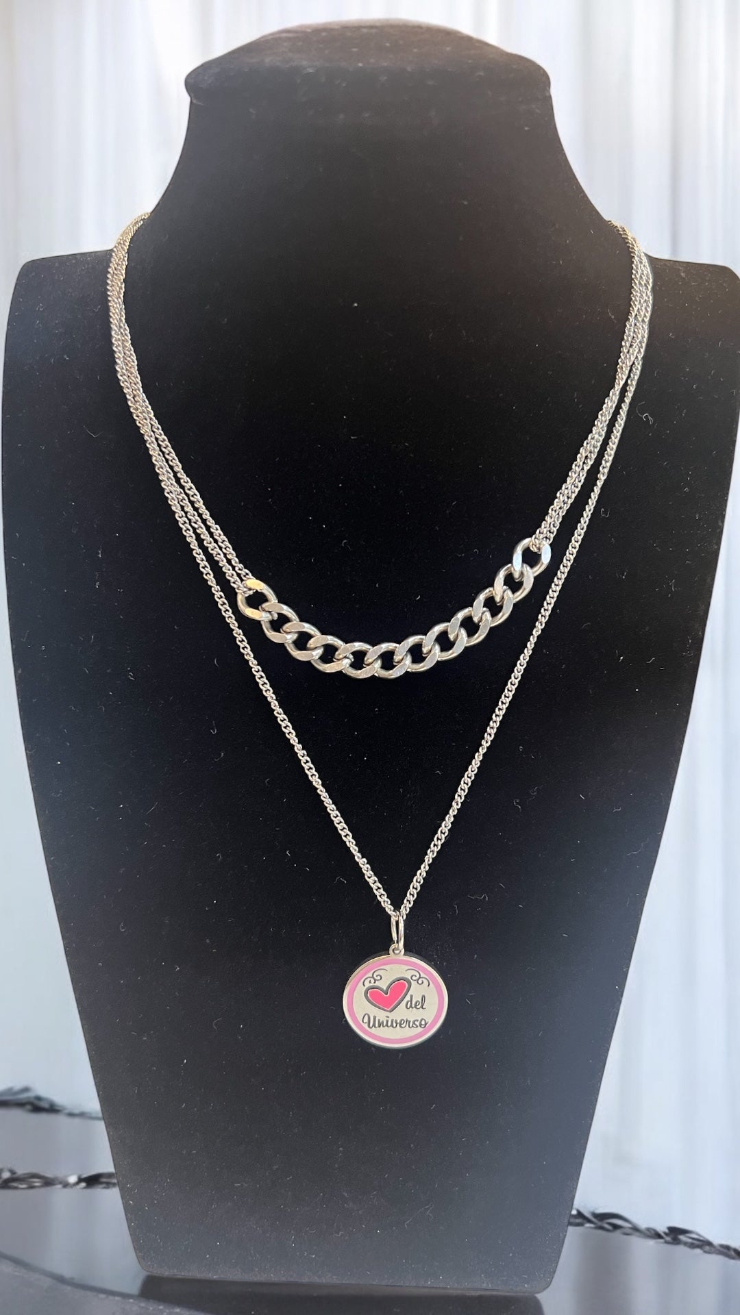 COLLAR PLATEADO CORAZON DEL UNIVERSO DE ACERO INOXIDABLE