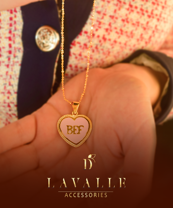 Cadena en bronce con dije BFF esmaltado, en bronce con baño de 24k,