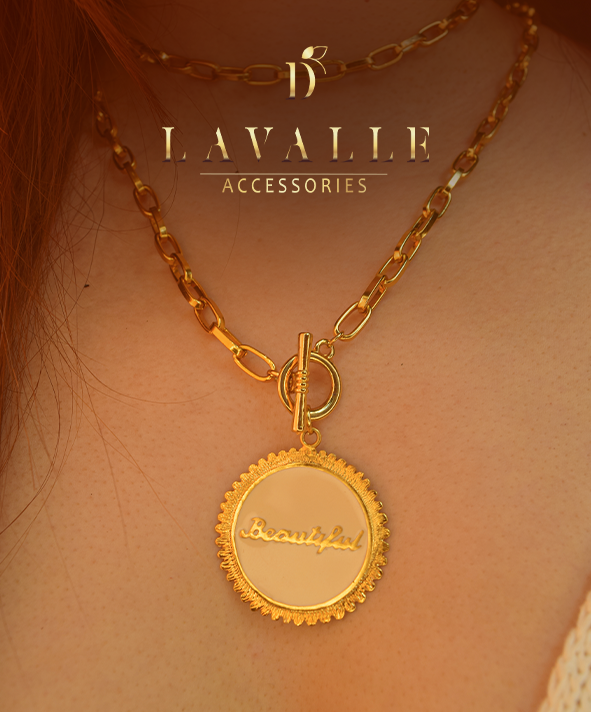 Cadena en bronce con dije beatiful en bronce con baño de 24k