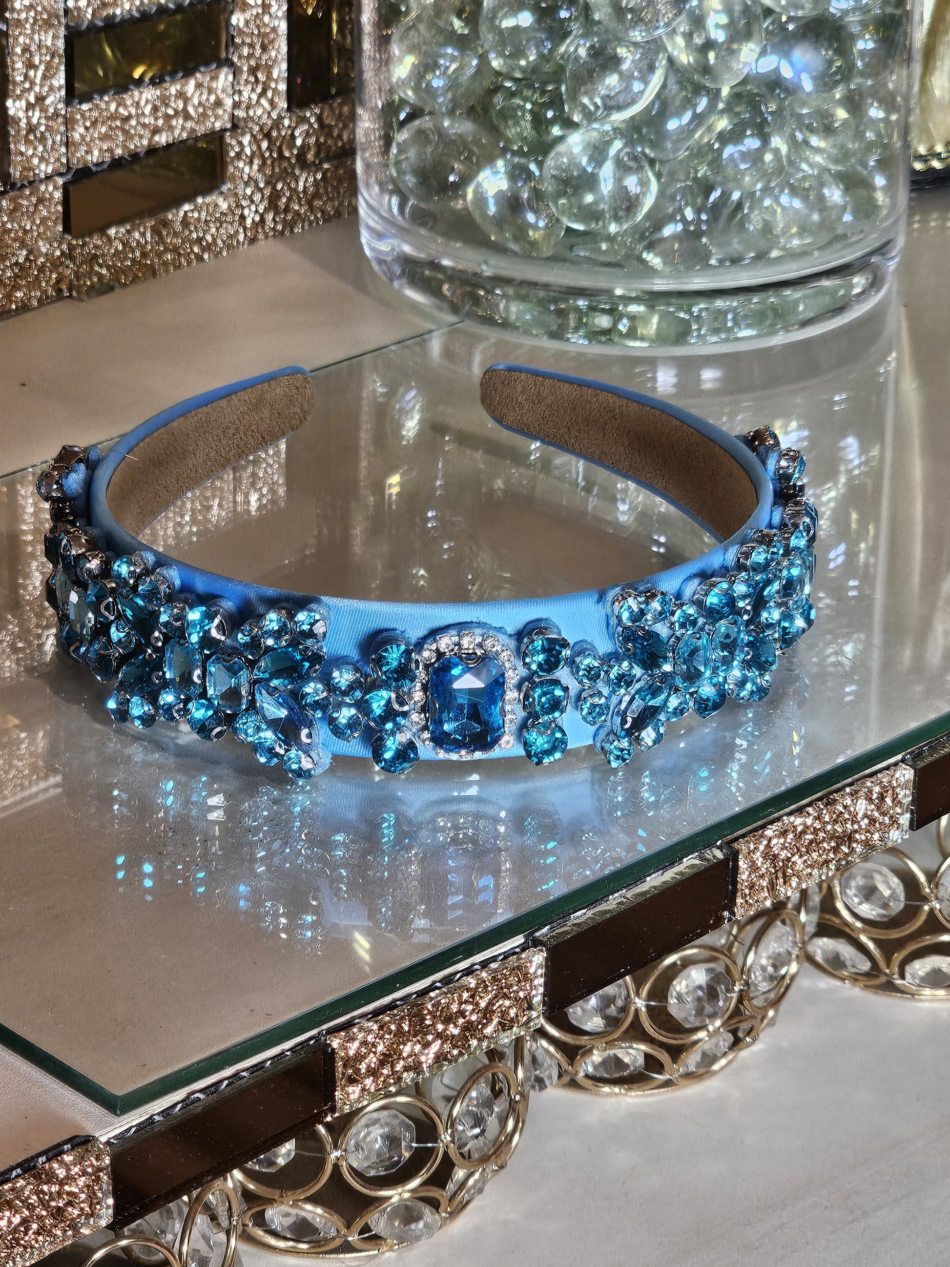 Diadema con zircones turquesa