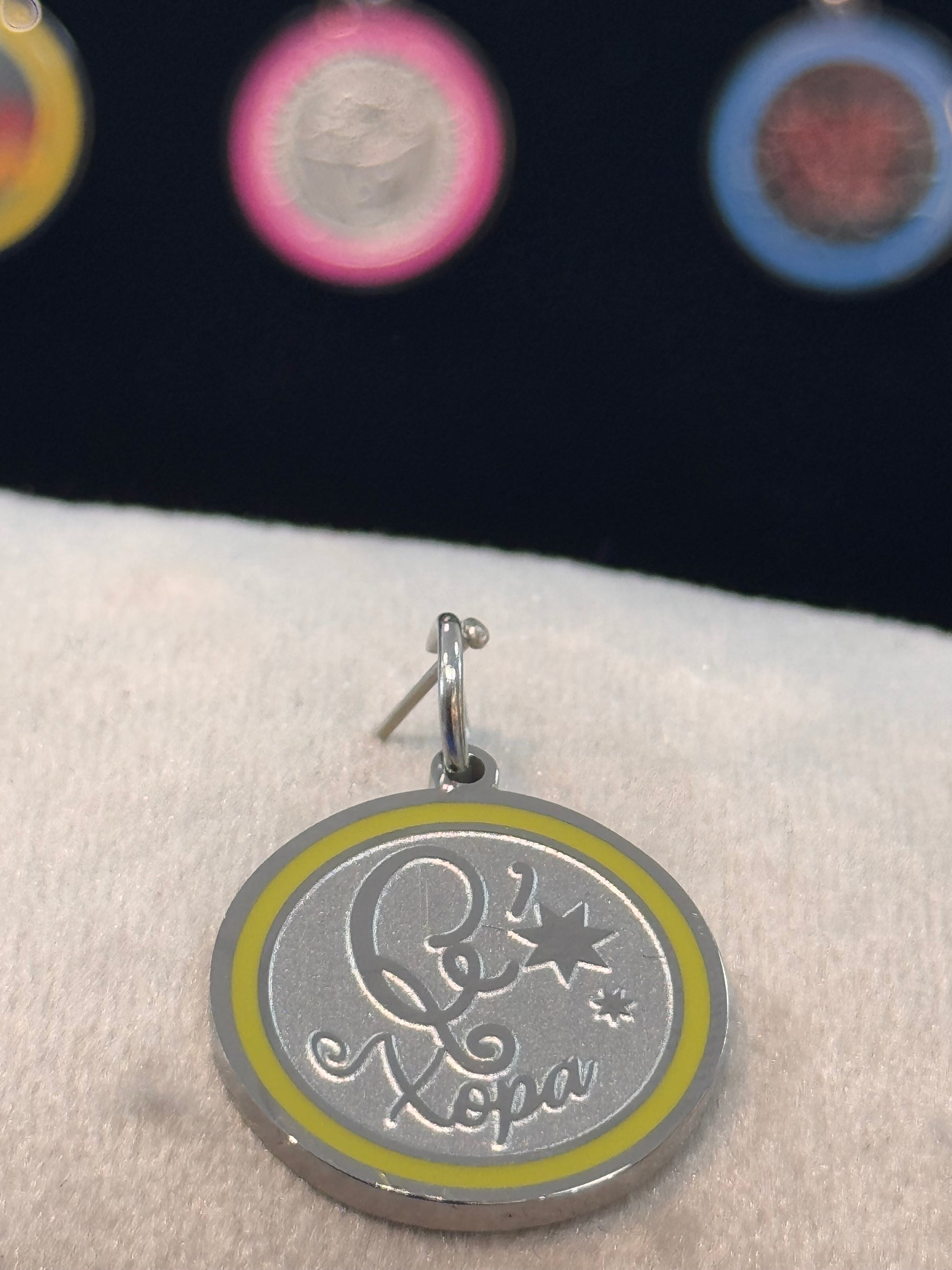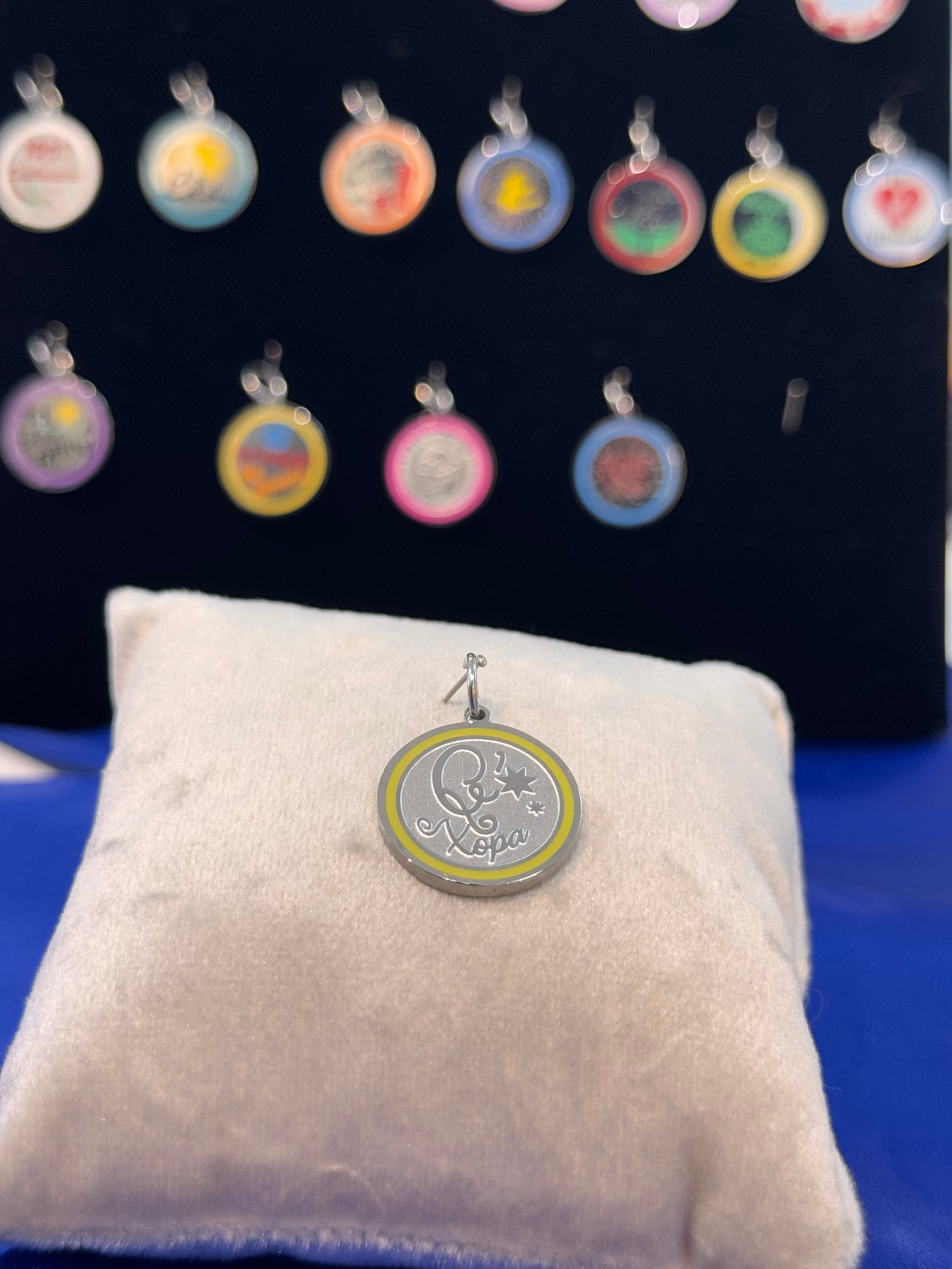 DIJE PLATEADO DE EDICIÓN LIMITADA DE ACERO INOXIDABLE CON DISEÑO DE Q XOPA