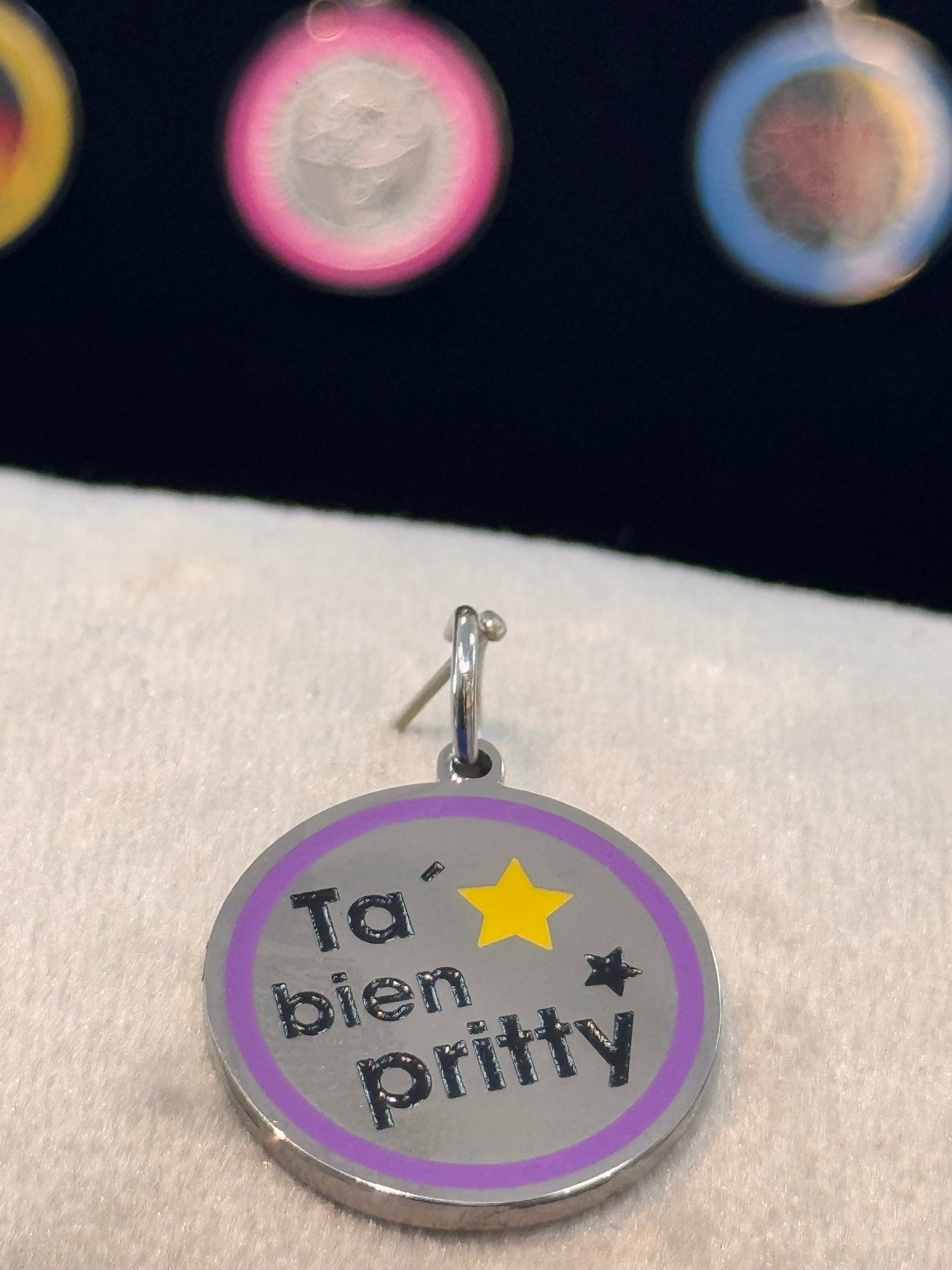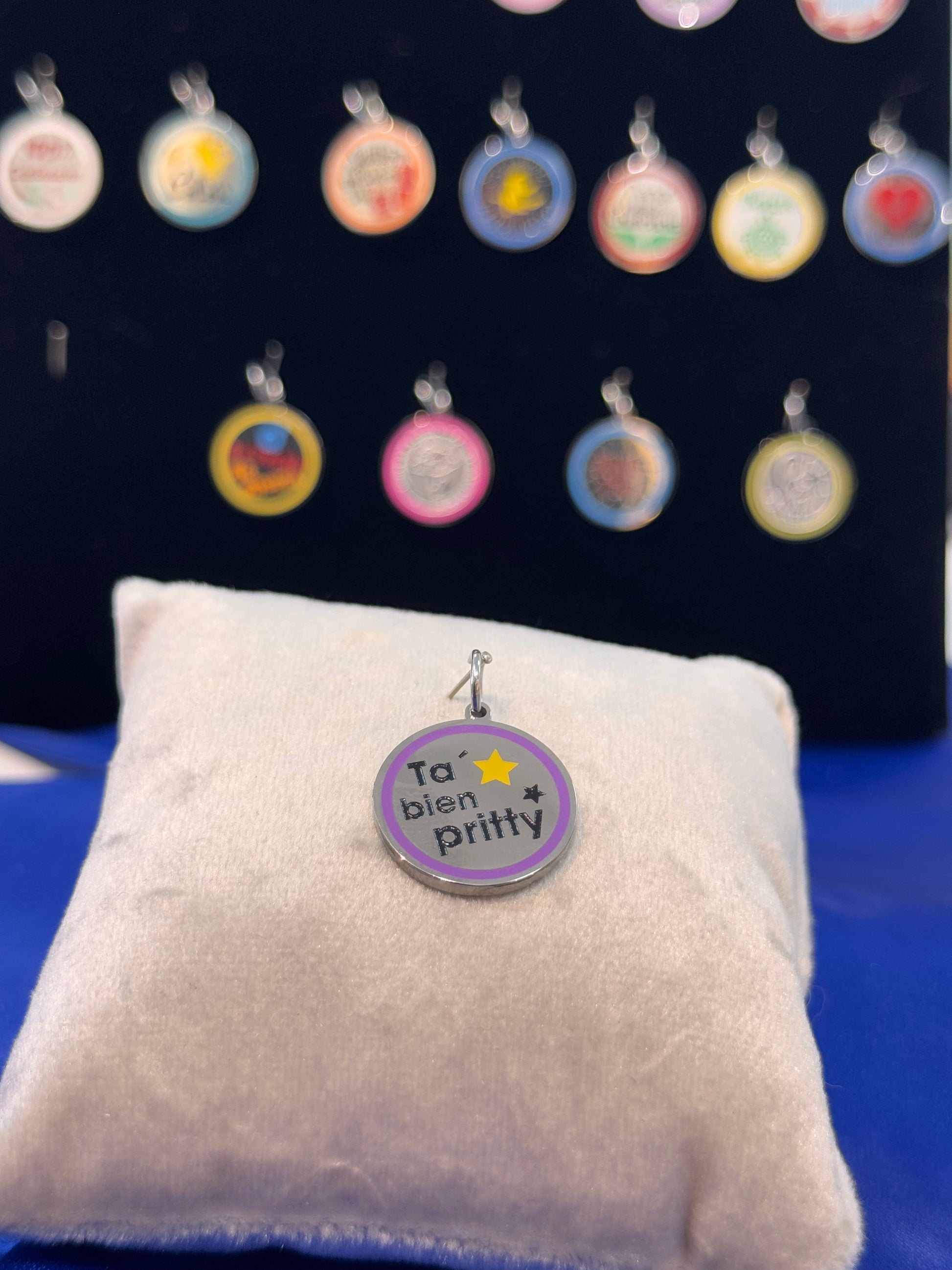 DIJE PLATEADO DE EDICIÓN LIMITADA DE ACERO INOXIDABLE CON DISEÑO DE TA BIEN PRITTY