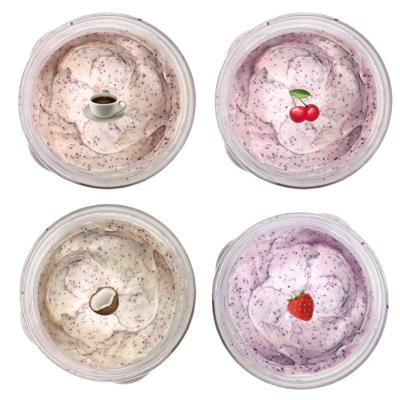 Irresistiblemente sabor a capuccino, cereza italiana, agua de coco, y batido de fresa