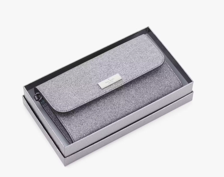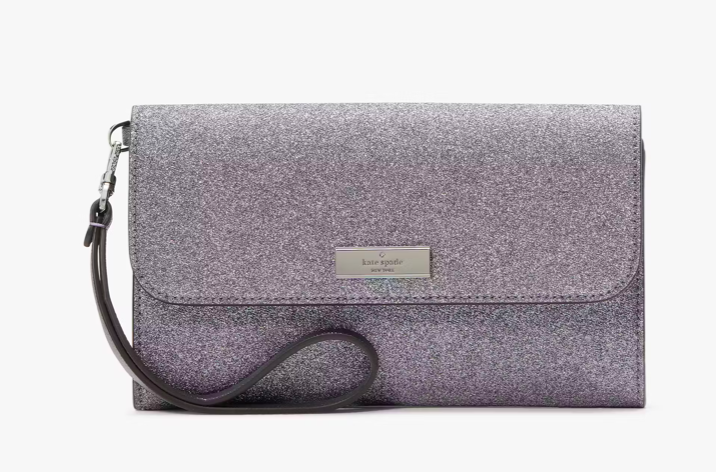 Hermosa Sparkling clutch de Kate spade en tono gris humo con plateado.13