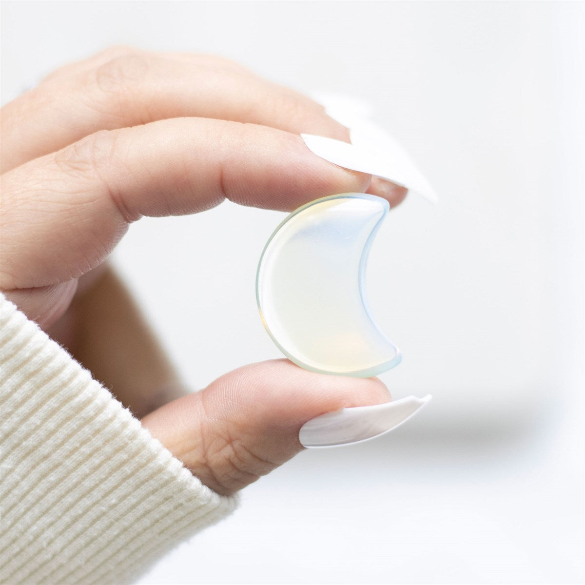Abraza la energía de la luna con este pequeño cristal de opalita/opalina en forma de medialuna.