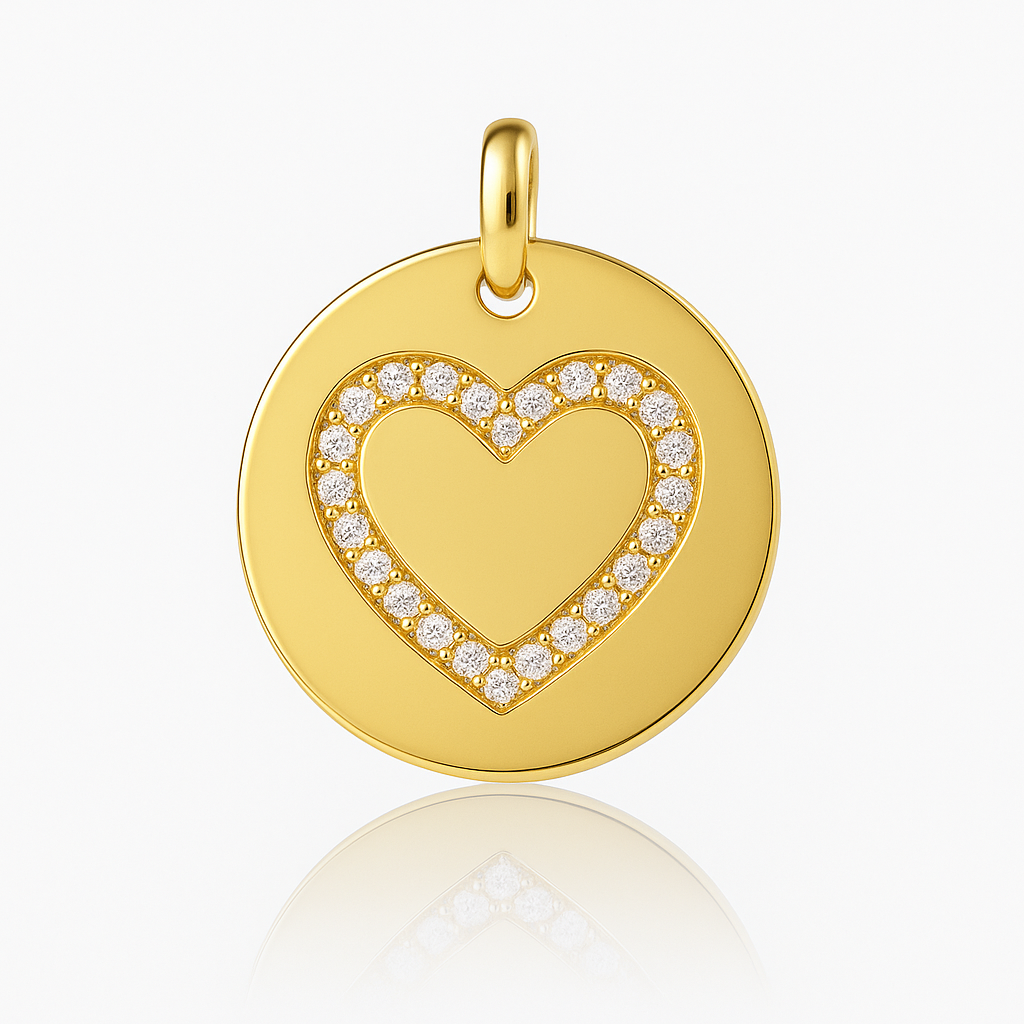 DIJE CIRCULAR CON SILUETA DE CIRCON EN CORAZON