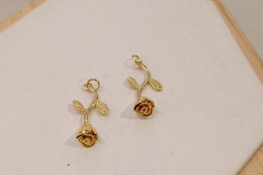 DIJE ROSA SENCILLA COLGANTE DE DOS HOJAS