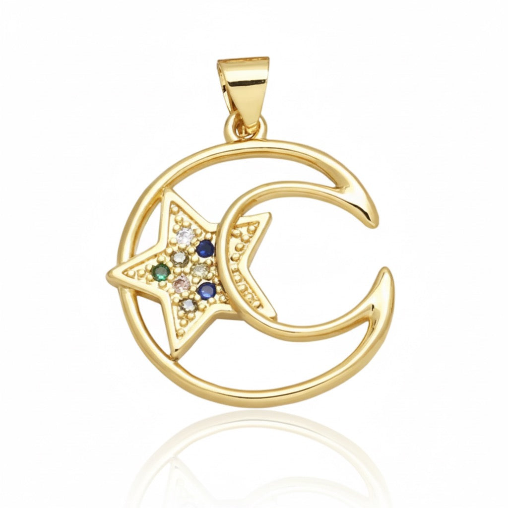 DIJE BORDE LUNA ESTRELLA CON CIRCONES