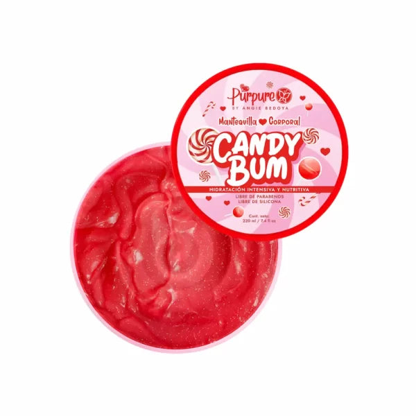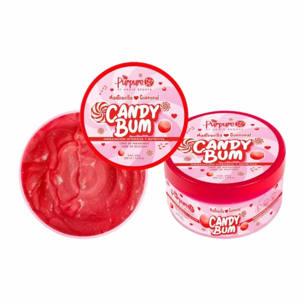 La Mantequilla Corporal Candy Bum es una crema de hidratación intensiva y nutritiva que aporta a tu piel frescura natural y un brillo delicado. Tiene un aroma delicioso, es libre de parabenos y libre de silicona.