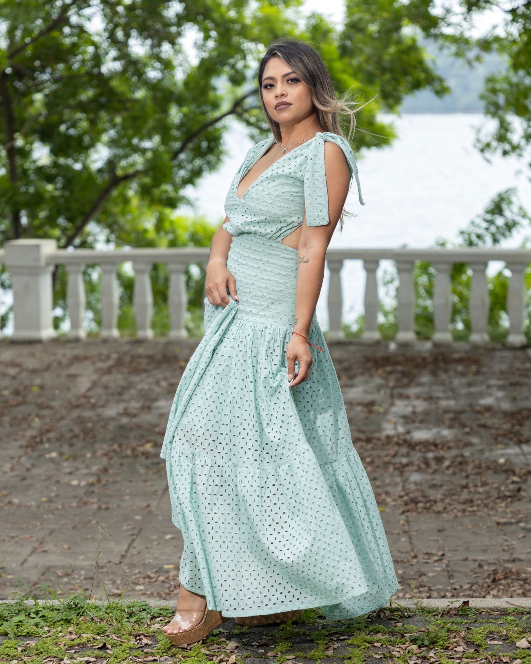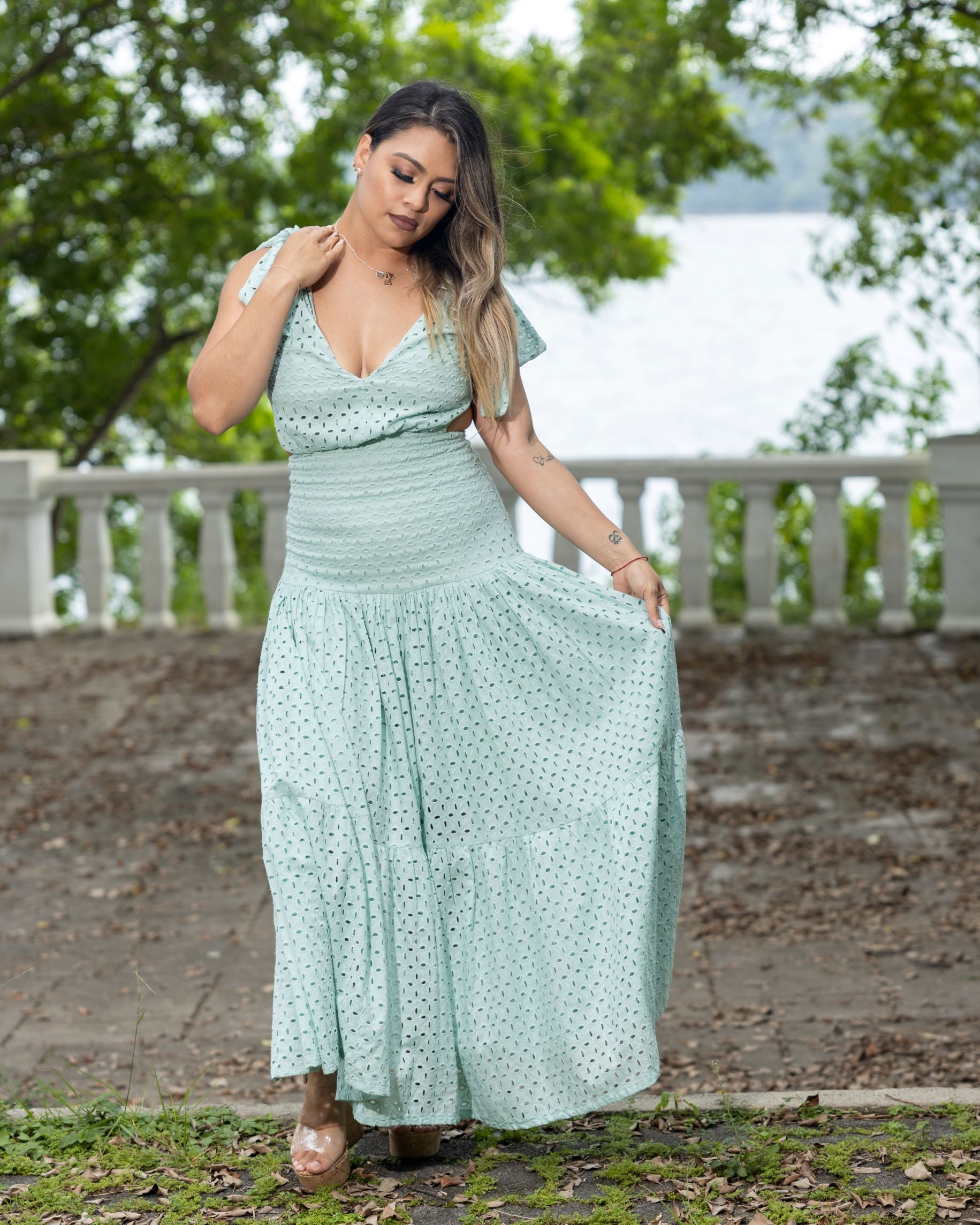 MAXI DRESS DE OJALILLO VERDE MENTA