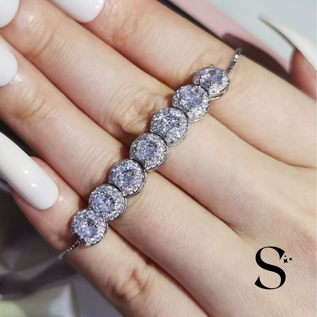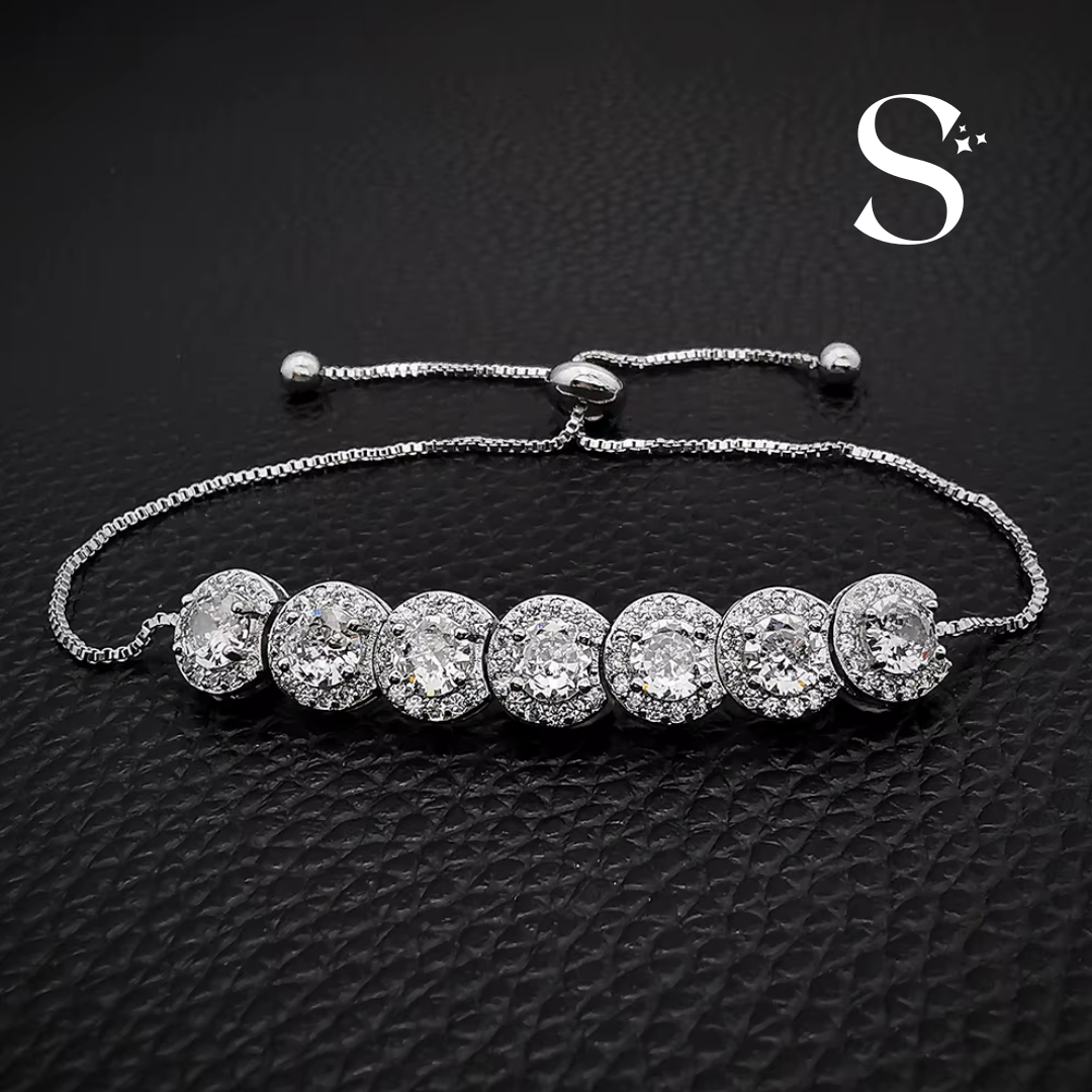 Elegante Brazaletes en tono plateado con cristales de zirconia.
