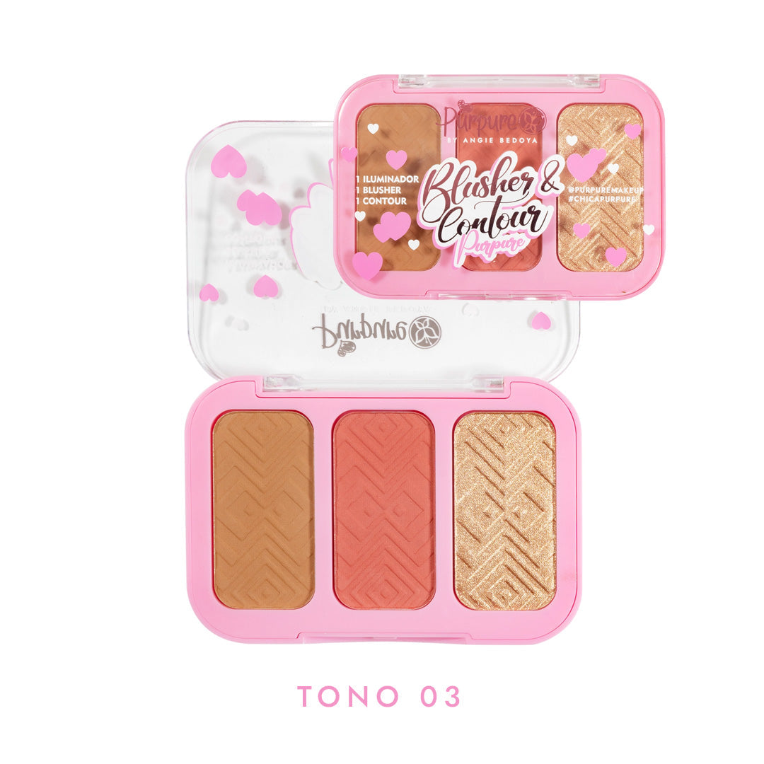 Hermosa paleta Blusher & Contour super completa que contiene rubor, contorno e iluminador. Perfecta para tu día a día, para que lleves un look hermoso y robes todas las miradas.