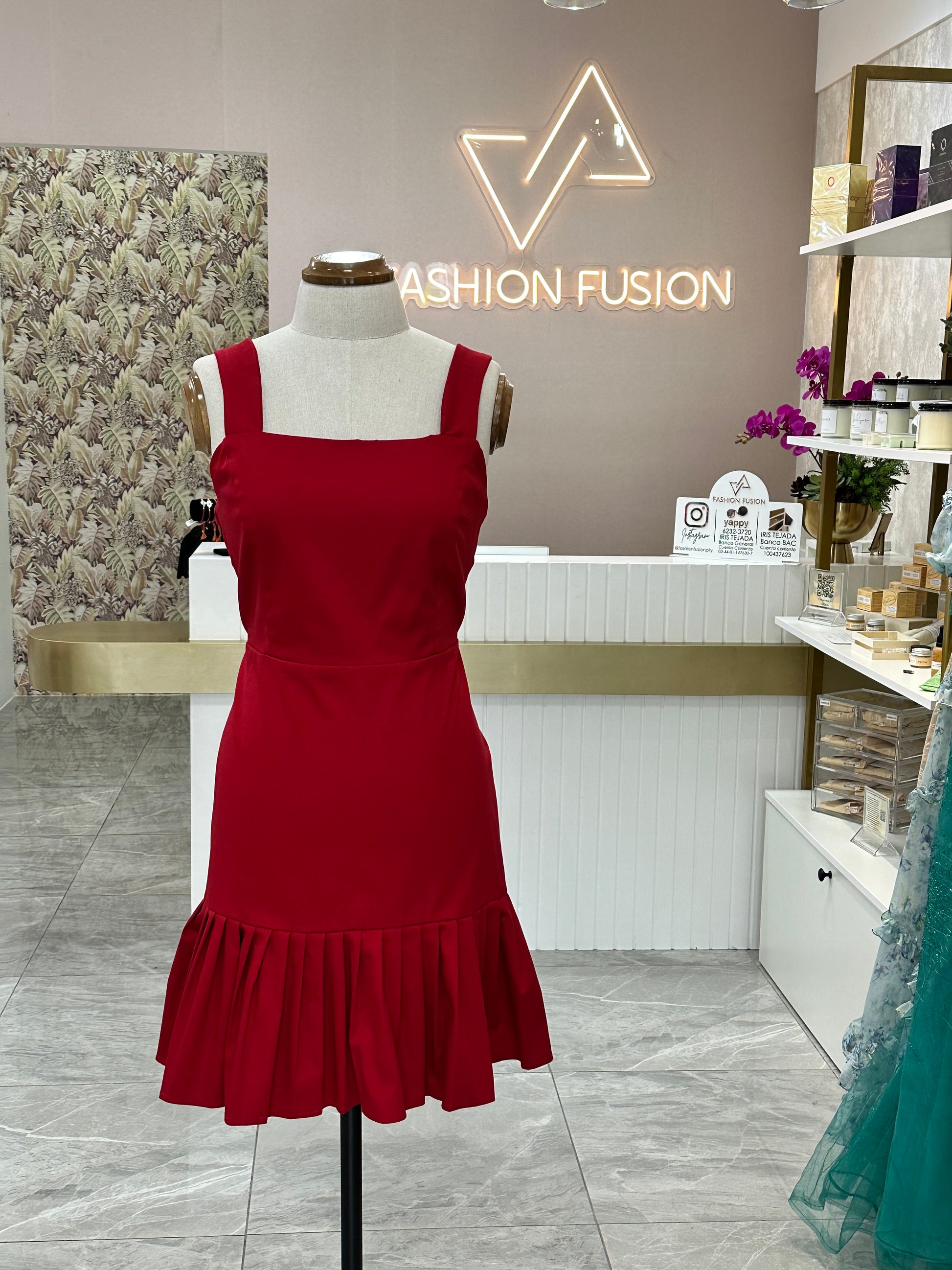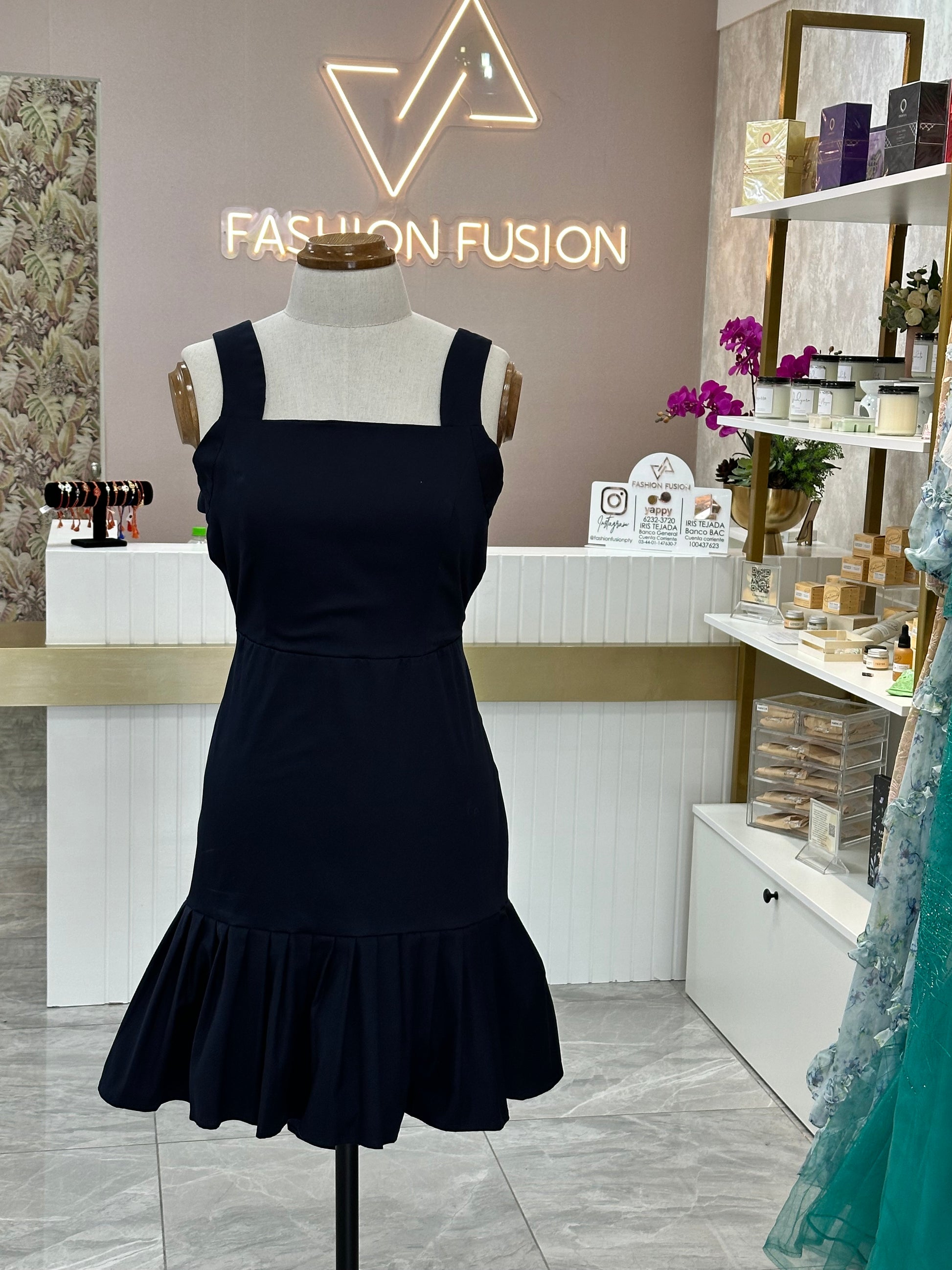 Mini Dress espalda afuera y cola de pato de algodón